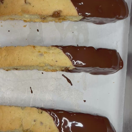 Crafted with roasted almonds and golden caramel pieces, this biscotti delivers a deep, buttery flavor in every crunch. We take it a step further with a hand-dipped dark chocolate and a pinch of flaky sea salt. It’s indulgent, balanced, and beautifully layered — the kind of treat that makes a quiet moment feel special.