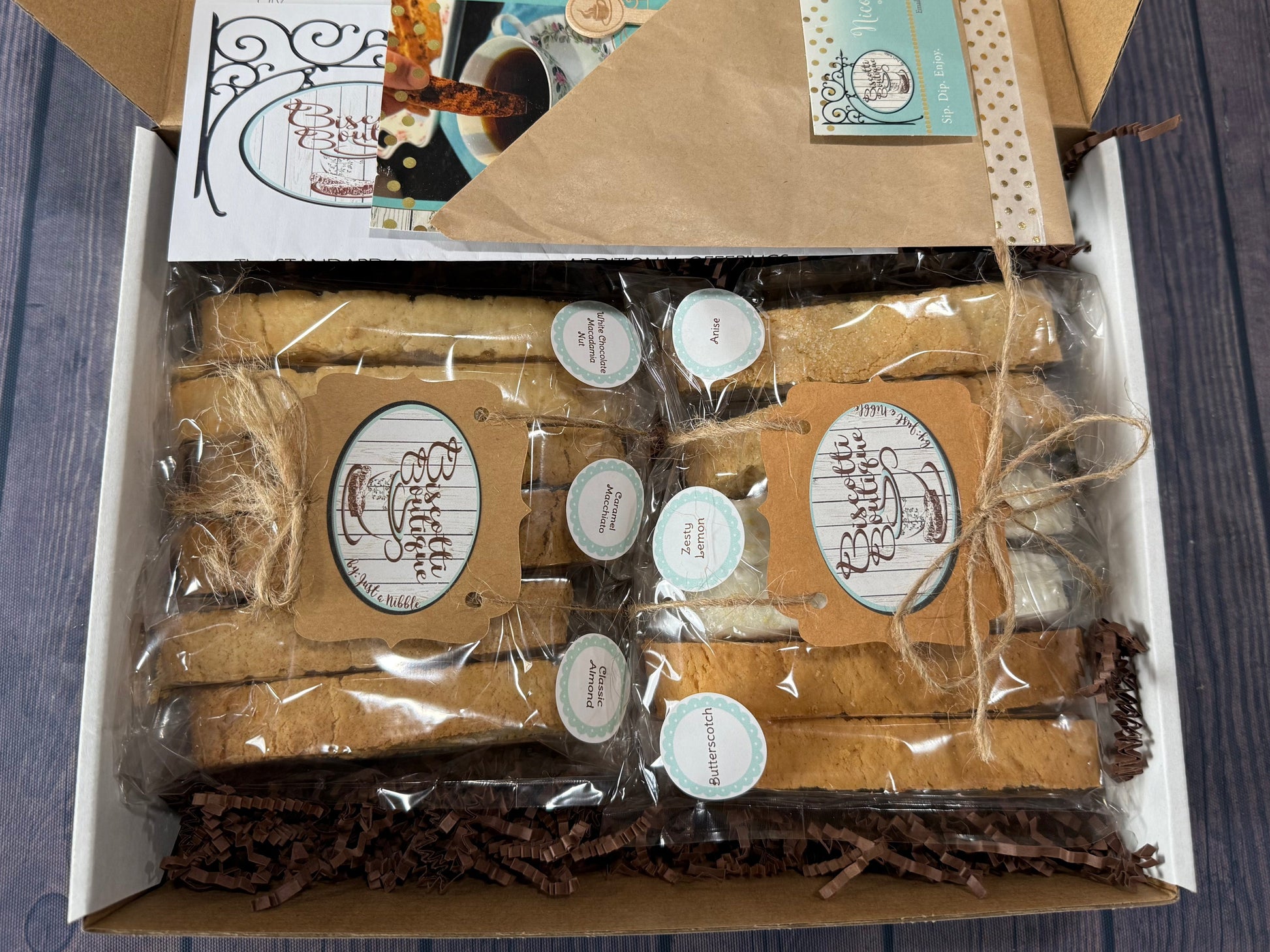 Join our Sip & Dip Club and savor the joy of biscotti delivered to your door each month. Every box highlights handcrafted flavors baked in small batches, paired with the perfect sip — whether coffee, tea, wine, or hot chocolate. From classic favorites to seasonal specialties, each delivery is a delicious surprise designed to make your coffee breaks, tea times, or cozy evenings even more memorable.
